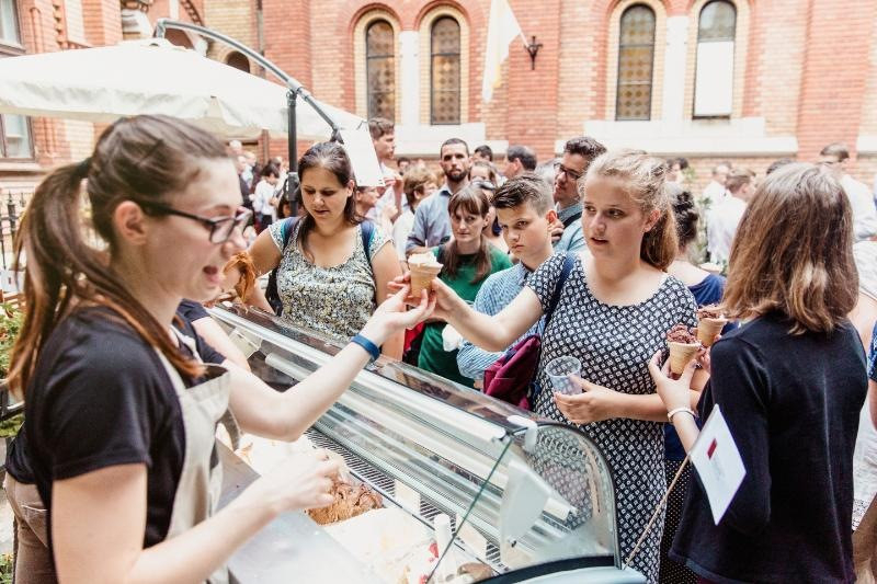 A szertartást követően a templomkertben kötetlen formában ünnepeltek a bérmálkozók és a jezsuiták barátai.