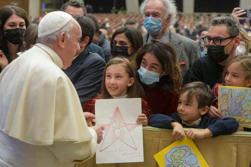 A pápa derűs karácsonyt kívánt mindenkinek, főként azoknak, akik nehéz körülmények között élnek. A világjárvány sok nehézséget okozott a családoknak, éppen ezért törekedtek arra, hogy megőrizzék a munkahelyeket. A megszorítások idején adódtak ugyan problémák, de a pápa bízik abban, hogy ezek a nehézségek a párbeszéd és a találkozás révén orvosolhatók, és tiszteletben lehet tartani a munkavállalók jogait és a közjót.