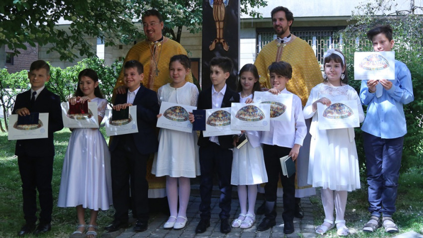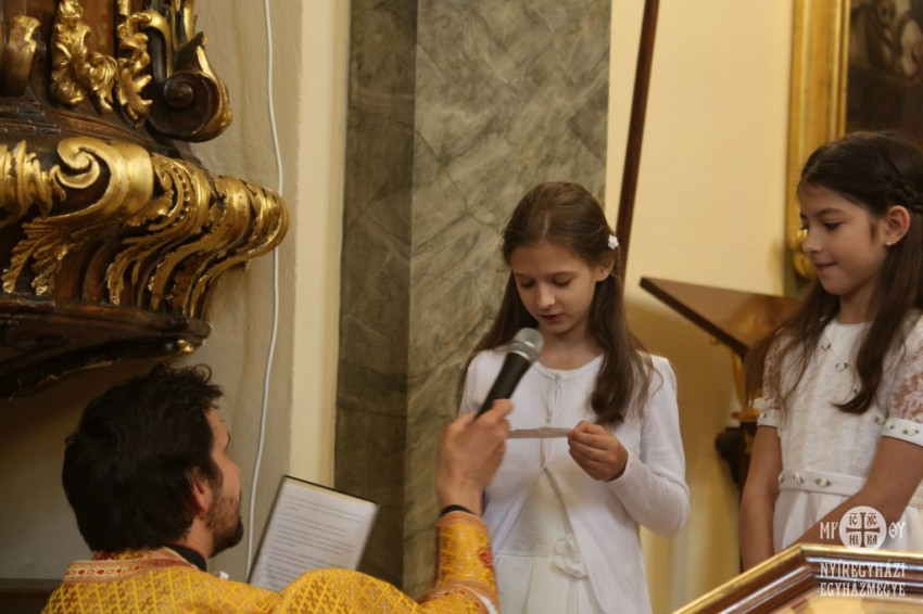 Budapesten, a Fő utcai görögkatolikus templomban hosszas készülődés, tanulás és sikeres vizsga után a gyermekek először gyóntak és áldoztak – elköteleződve a görögkatolikus Egyház mellett –, Kocsis Tamás atya vezetésével.