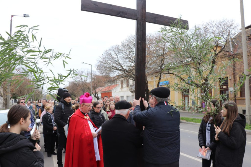 Papp László polgármester házigazdaként köszöntötte a híveket, majd Palánki Ferenc megyéspüspök így fogalmazott: „Nagyböjt kezdete óta a szívünket bűnbánattal és jócselekedetekkel már előkészítettük. Ma azért gyűltünk össze, hogy az egész Egyházzal együtt lélekben előre átéljük Urunk húsvéti misztériumát, vagyis szenvedését és feltámadását. Ő ugyanis ezt a misztériumot akarta beteljesíteni, amikor fölment városába, Jeruzsálembe.