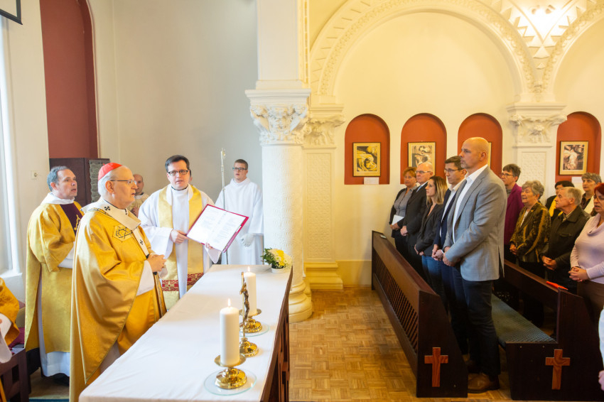 A kápolna az Istennel való találkozás helye, halljuk gyakorta – kezdte beszédét Erdő Péter. – De hol lakik Isten? A bíboros beszédében arról tanított, mi a viszony a kereszténység és az épített templom között, hogyan lehet jelen az anyagban a szellem, az az Isten, aki túl van a téren és időn, és – ahogy Szent Pál írja – mindenek felett áll, és mindent átjár, mindenben benne van. Miért kell akkor külön templom? – tette fel mindannyiunk logikus kérdését a bíboros.
