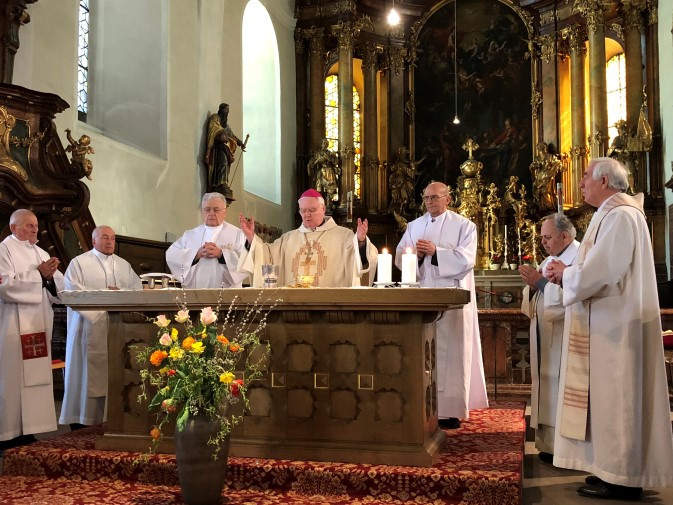 A találkozás csúcspontja a koncelebrált magyar nyelvű szentmise volt csütörtök délelőtt a linzi belvárosi templomban (Stadtpfarrkirche). A főcelebráns Cserháti Ferenc segédpüspök, az ünnepi szónok pedig Ambrus Vilmos plébános volt. Szabó Ernő linzi magyar lelkész is csatlakozott az ünneplőkhöz hívei egy csoportjával, köztük erdélyi származású hívekkel.