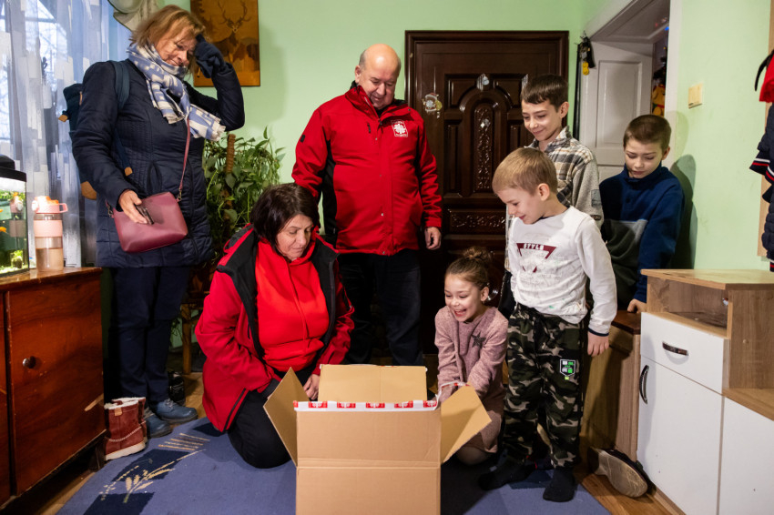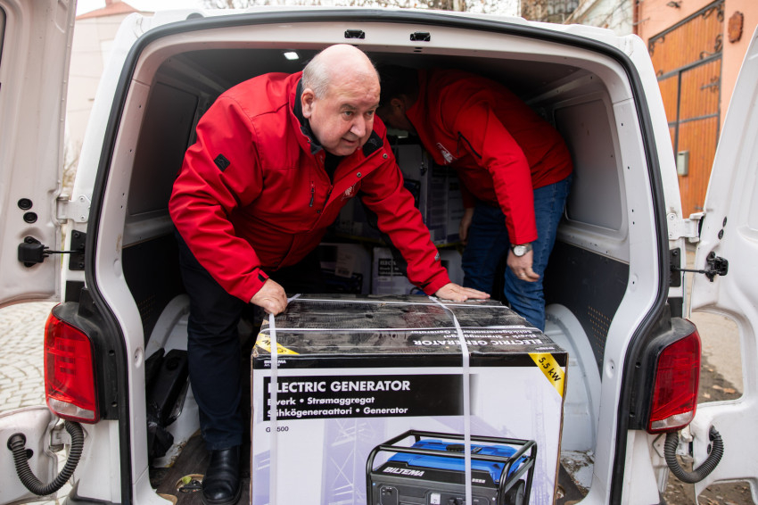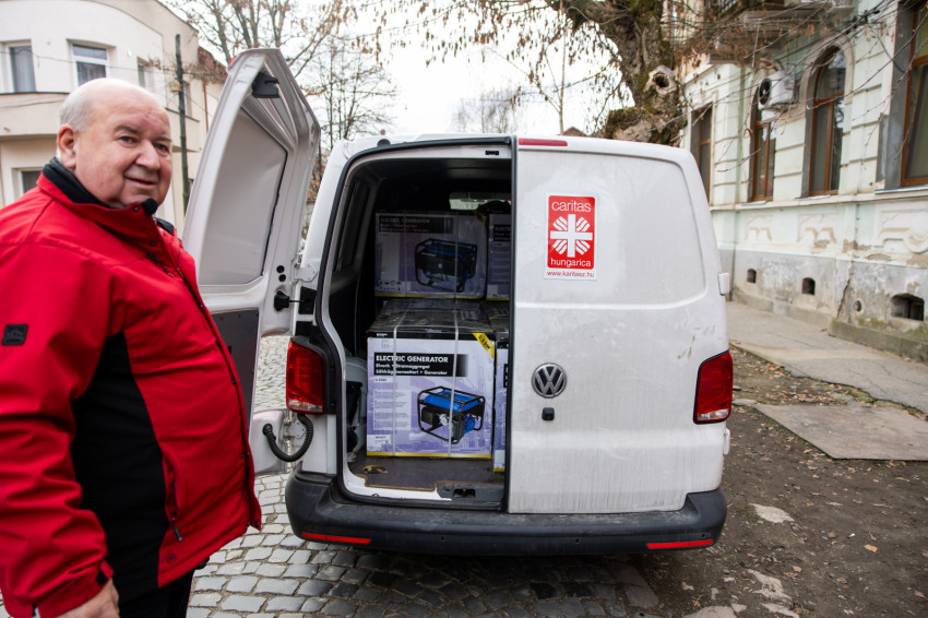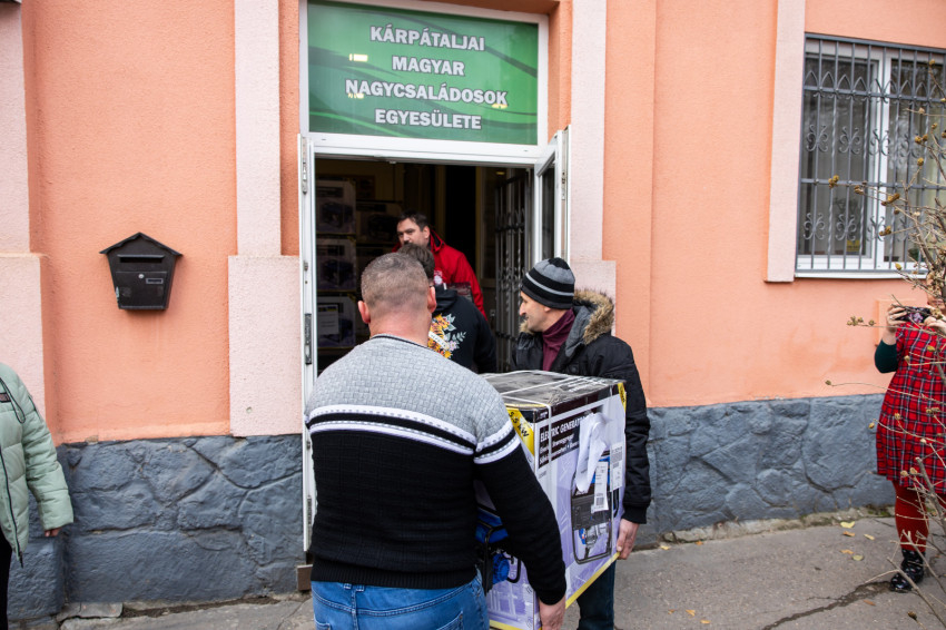 Az adományszállító út fő címzettjei ezúttal a nagycsaládosok. Szilágyiné Tóth Gabriella, a Kárpátaljai Magyar Nagycsaládosok Egyesület alelnöke fogad minket. Elsőként a tizenkét generátort pakolják le a transzporterről. „Az áramfejlesztő nagyon fontos most nekünk. Nehéz az áramkimaradásokkal együtt élni, főként ahol kisgyerek van. Az egyesületnél 330 család jelentkezett generátorért. Megvizsgáljuk minden kérelmező helyzetét. Előnyben részesítjük az özvegyeket, ahol egy ember gondoskodik a gyerekekről és a fekvő beteget ápoló családokat. Igyekszünk minden szempontot figyelembe venni, de nehéz igazságot tenni, biztosan vannak elégedetlenek, de mi megpróbáljuk megtenni, amit lehet” – mondja el Gabriella, és