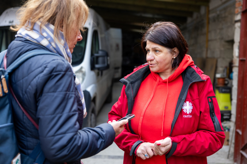 Tőlünk a férfiak nem tudják vállalni a szállítást, nem utazhatnak, tartanak a behívástól. Már a papok mentessége is veszélybe került, és csak év végéig van meg az határátlépési engedélyük” – ismerteti a jelenlegi körülményeket Hajlik Katalin, a munkácsi karitász vezetője. Elmondja azt is, hogy ötven csomagot visznek Beregkövesdre, ahova betelepítettek menekülteket. Sok a nyugdíjas és mozgáskorlátozott ember. Sír a falu vezetése, hogy honnan szerezzenek támogatást. A segélyszolgálatok a városokban működnek, falura nehezen jut el a segítség. A munkácsi karitász jó kapcsolatban van más segélyt nyújtó szervezetekkel, összedolgoznak, ki, mit tud beszerezni.