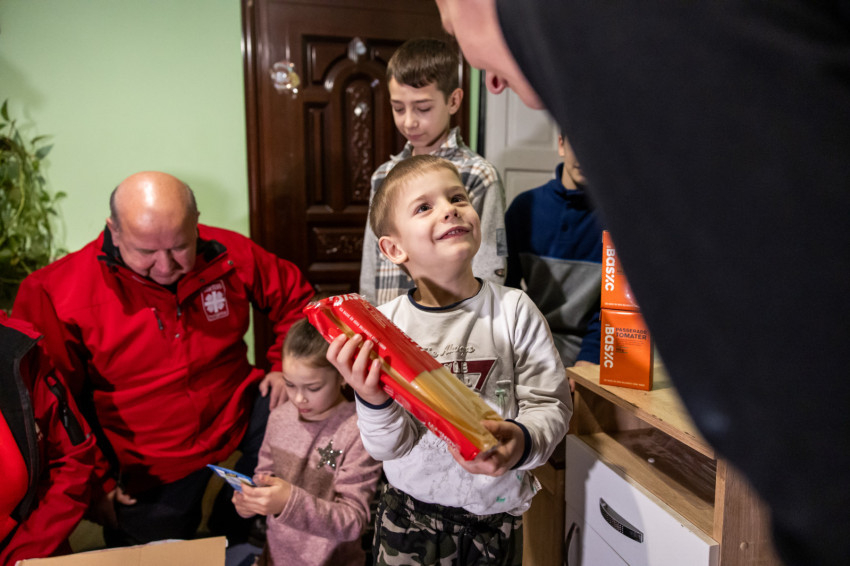 Az utolsó állomás egy család. Ukránok, öt gyermeket nevelnek, sok nehézségen vannak túl. Az ismeretség a templomból van, a gyerekek most voltak elsőáldozók – meséli Kati.
