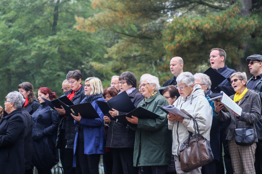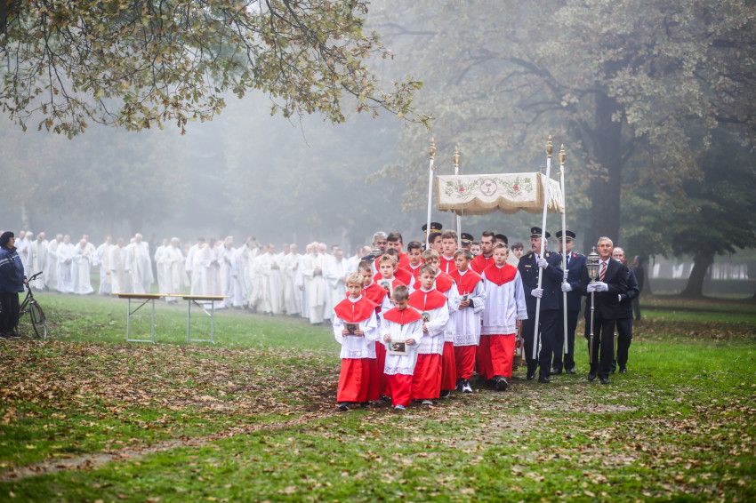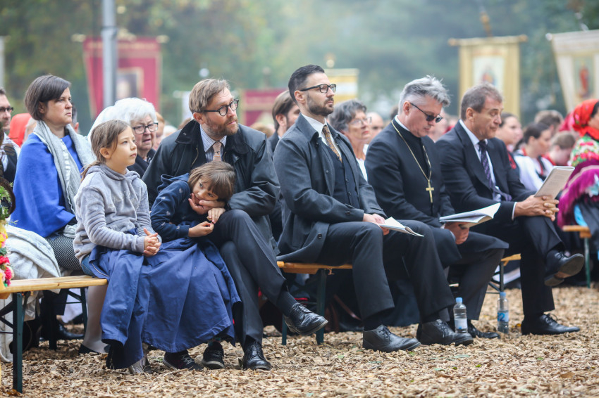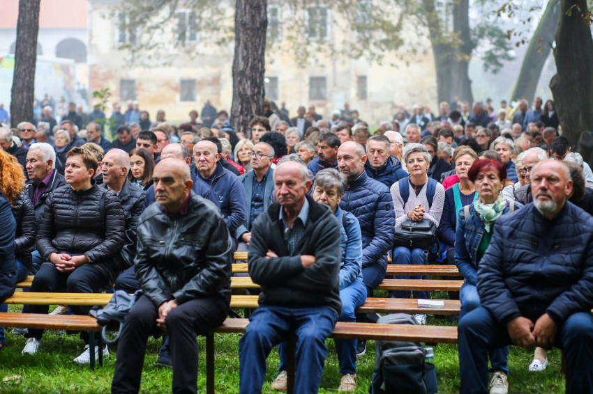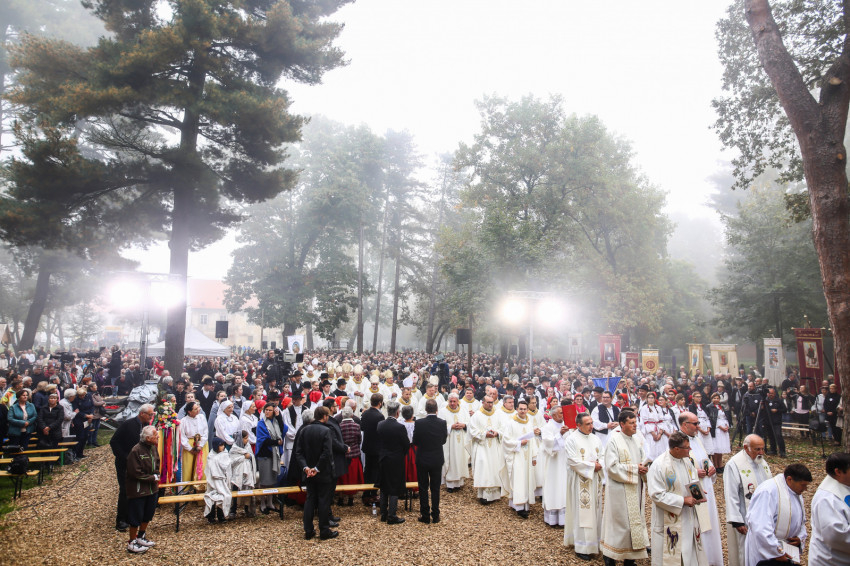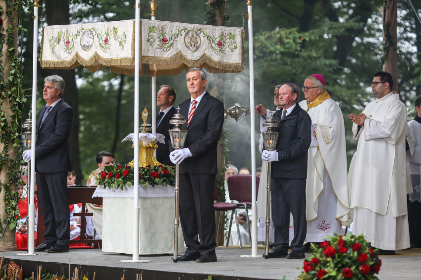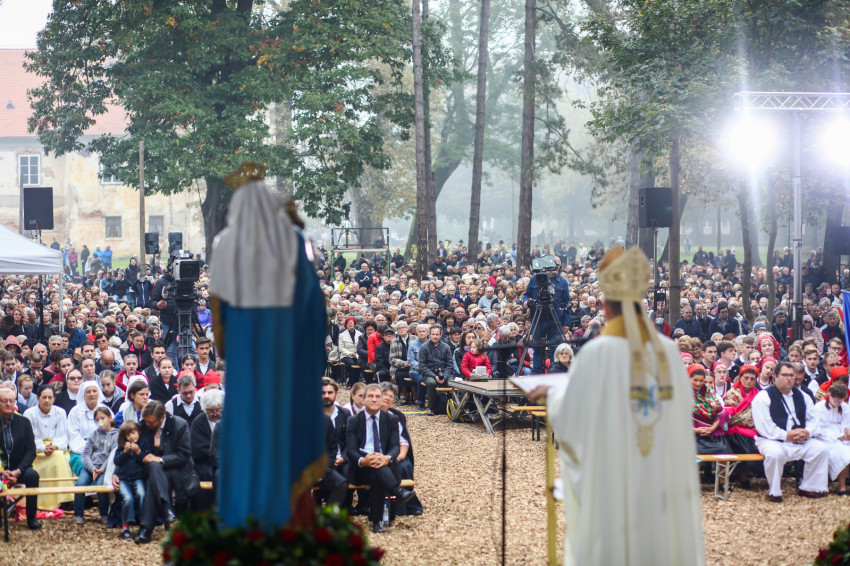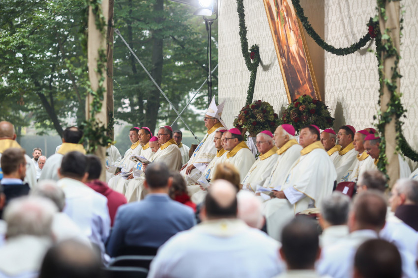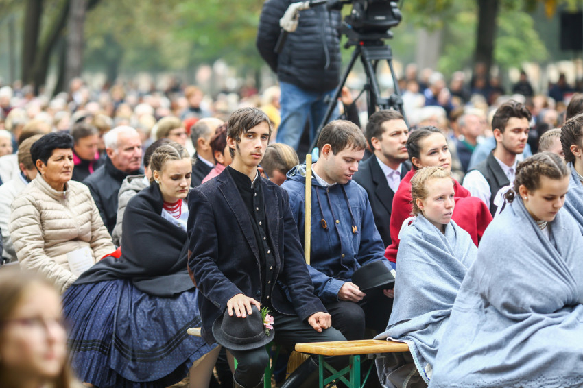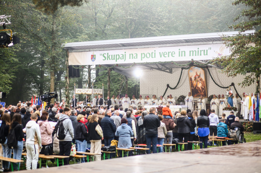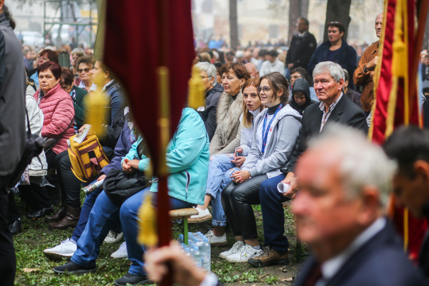 A szabadtéri oltár előtt felállított padokat sorban foglalják el az érkezők, az a több ezer katolikus, akik a környező településekről érkeztek. Magyarok Szlovéniából és Magyarországról, horvátok Horvátországból és Magyarországról, szlovének helyből és több magyarországi településről.
