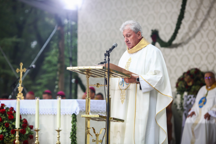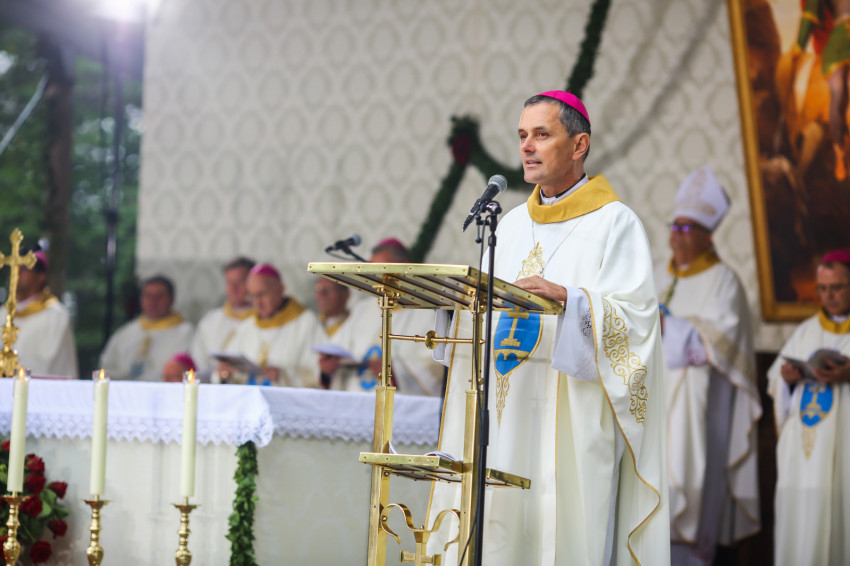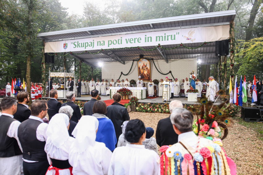 A szentmise szónoka Bože Radoš varasdi megyéspüspök volt. Szentbeszédét Rezonja Franc olvasta fel magyar fordításban. Az elmélkedés Szűz Mária, a Rózsafüzér Királynője ünnepéhez kapcsolódott, akit „mindhárom nemzet anyjaként tisztel”.