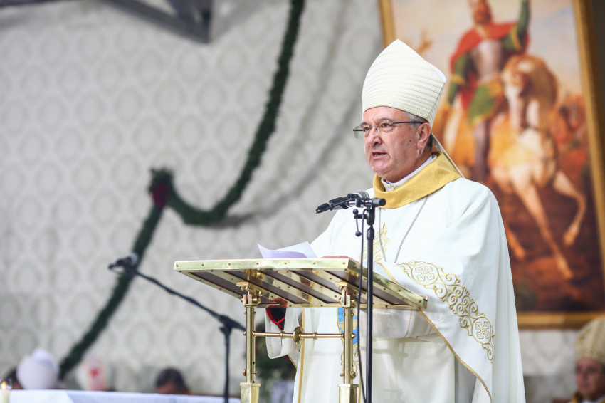 Az itt jelen lévő három nemzet gyermekeit összeköti a közös történelmi múlt, a krisztusi evangéliumot hősiesen megélt szentek egész sokasága, köztük Szent László, aki nemcsak nagyszerű uralkodó volt, hanem apostoli királyként az Egyház megerősítésén is sokat fáradozott – emlékeztetett Veres András, majd köszönetet mondott Peter Štumpf muraszombati megyéspüspöknek, hogy meghívására együtt ünnepelhetett a három nemzet. „Isten áldása kísérje család- és nemzetépítő munkánkat!”