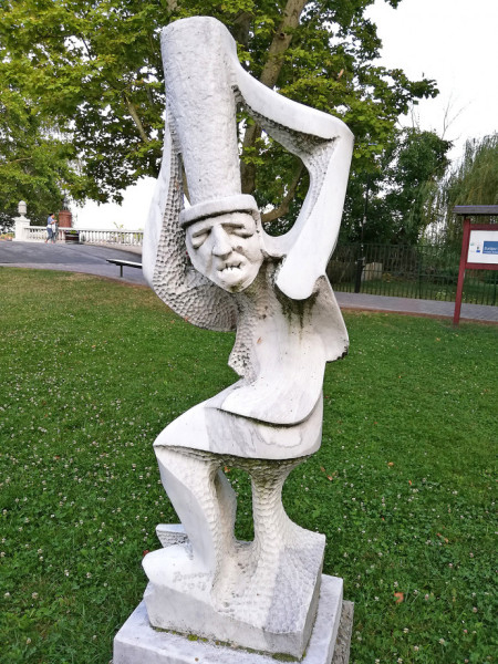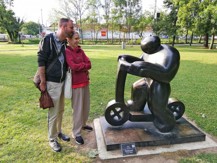 Sok itt a látnivaló. Nem beszéltünk még Boldi rollerezőjéről, amelynek másik példánya Pesten van kiállítva, a Váci utca közelében, az arra járók örömére; sokan szívesen fényképezkednek a közelében. Az egész szabadtéri szobortárlatot végigkísérik Berzsenyi Tamás Komédiásai: több is van belőlük, utunk során időről időre felbukkannak ezek a kisméretű, groteszk kőfaragások. Hosszú kalapjuk, gyötrődő arckifejezésük azt mutatja, hogy a csepűrágók élete sem könnyű.