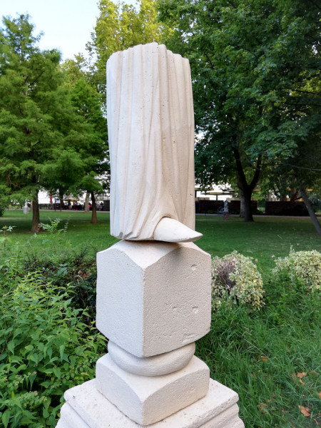 Stamler Lajos Közelítő című faragása rejtélyes: vajon ki az, akinek csak a cipője látszik? Egy nagy, félbetört oszlopra emlékeztető, függönyszerű ruhatöredék alól kandikál ki a lábbeli, többrétegű posztamens támasztja alá. Érdekes, sejtető műalkotás: mintha csak egy krimiben a színházi függöny alól lépne ki valaki.