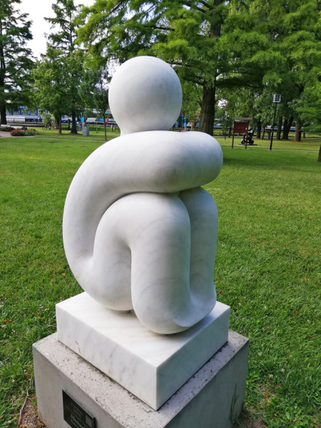 És van olyan, mint Czér Péter fehér márványból faragott Merengő című szobra (amely szintén guggol); erősen stilizált ugyan, de rendkívül kifejező. A szobrásznak sikerült megragadnia a lényeget, még akkor is, ha a testrészeket egyszerű gömbformára alakította. Arca, lábfeje, keze nincs a szobornak, ami nem kis kockázat, mégis azt mondhatjuk: a mű – szó szerint – kerek, egész.