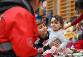 A Katolikus Karitász a háború kezdete óta a barabási fogadóközpont működtetésével, valamint a Budapesti Olimpiai Központban (BOK) – a többi segélyszervezettel együttműködve – élelmezéssel; a szervezet kiterjedt önkénteshálózatán keresztül ideiglenes szálláshelyek biztosításával és az egyházi infrastruktúra ideiglenes menedékhelyként való hasznosításával reagált rögtön a humanitárius válsághelyzetre. A szervezet továbbra is folytatja az azonnali ellátást igénylő szükségletekre való reagálást, beleértve a menekültek határon történő fogadását, ellátását. Eddig huszonegyezer menekült ellátását segítették a szervezet Segítő Pontjain, valamint 567 menekült számára biztosítanak jelenleg is átmeneti lakhatást, szállást.