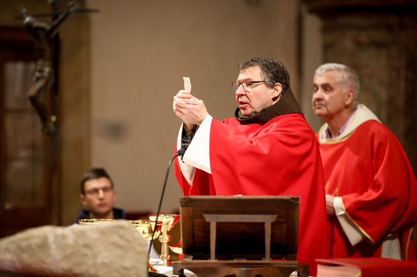 A Római Birodalomban a katonák csak a szolgálati idejük leteltével házasodhattak meg, különleges kegynek számított, ha valakinek előbb engedélyt adott erre a császár, mondta el Horváth Achilles OFM a mise elején, és hozzátette, hogy a Kr. u. 269-ben vértanúhalált szenvedett Szent Bálint a római császár parancsa ellenére titokban esketett össze katonákat a szerelmükkel, és a legenda szerint a friss házasokat a saját kertjéből származó egy-egy szál rózsával ajándékozta meg. „Franciaországban már a 14. században divat volt, hogy Szent Bálint (Valentinus) napján a szerelmesek apróságokkal lepték meg egymást. Szeretnénk a világi szokások előtt újra meghonosítani a szerelmesek védőszentjének miséjét és együtt ünnepelni veletek” – mondta a káplán.