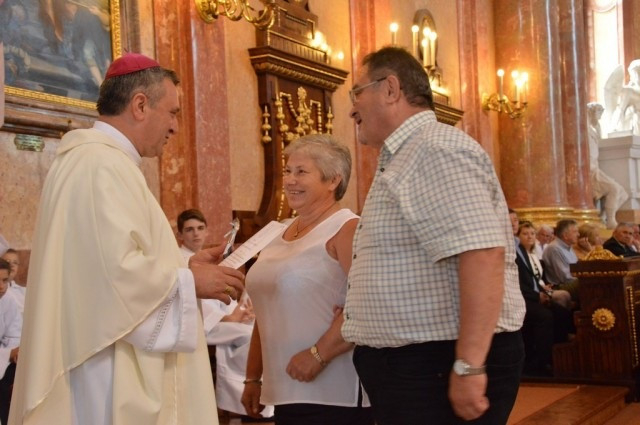 A szentbeszéd után a jubilánsok megerősítették esküvőn tett fogadalmukat, majd a püspök megáldotta őket. A párok emléklapot és lakatot kaptak a főpásztortól az életükben oly fontos esemény alkalmából. Az előbbi otthon idézi majd fel a jeles napot, az utóbbi pedig a szombathelyi látogatások alkalmával. Hagyomány ugyanis, hogy a házaspárok a fogadalmukat jelképező lakatot a székesegyház melletti átjáró kerítésén helyezik el. Így amikor erre járnak, bármikor vethetnek rá egy pillantást.