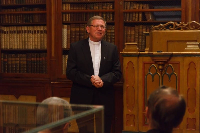 Pápai Lajos megyéspüspök megnyitóbeszédében a kereszténység kultúrateremtő és -terjesztő szerepére hívta fel a figyelmet. Ahogy XVI. Benedek pápa fogalmazott, a kereszténység nem a mítoszt, hanem a logoszt választotta, vagyis a pogány vallásokat babonaként vetette el, a pogány filozófusok életművét azonban értékelte. Edith Stein szerint aki az igazságot keresi, akarva-akaratlanul Krisztust keresi. Az emeritus pápa egy beszédében kiemelte: „Merjétek bátran kutatni az igazságot, mert az igazság szabaddá tesz titeket.” Pápai Lajos e megfontolások nyomán hangsúlyozta, a keresztény ember félelem nélkül, szabad lélekkel tekint a kultúrára, s amellett az értelem – logosz – mellett áll, mely Istentől ered. A főpásztor kifejezte örömét, hogy 25 évvel ezelőtt kihasználhatták az adódó lehetőséget a kincstár és könyvtár megalapítására, megköszönte a segítséget, és azt kívánta, hogy az eddigi színvonalas munka minél tovább folytatódjon.