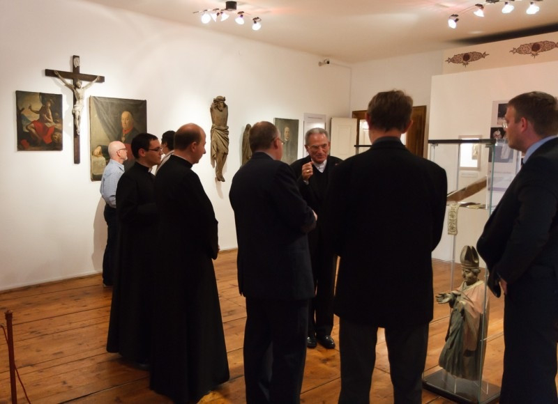 Kiss Tamás ezután bemutatta a jubileumi kiállítást: az első teremben az állandó kiállításon túl a Győri Egyházmegye plébániáiról származó értékes liturgikus tárgyak láthatók, a második teremben pedig eddig még nem restaurált műkincsek tekinthetők meg. A szemléletmódjában új kiállítás egyúttal figyelemfelhívás műtárgyaink jelentőségére és állapotára. A könyvtárteremben pedig a csaknem 80 ezer kötetes anyagból láthatnak válogatást az érdeklődők, az országban Budapesten kívül kizárólag itt fellelhető corvinával, a Zalka-antifonáriummal, valamint francia nyelvű könyvekkel és ősnyomtatványokkal. A megnyitó után a vendégek, köztük Nicolas Jean René Brouwet lourdes-i püspök, megtekinthették a kiállítást.