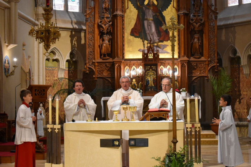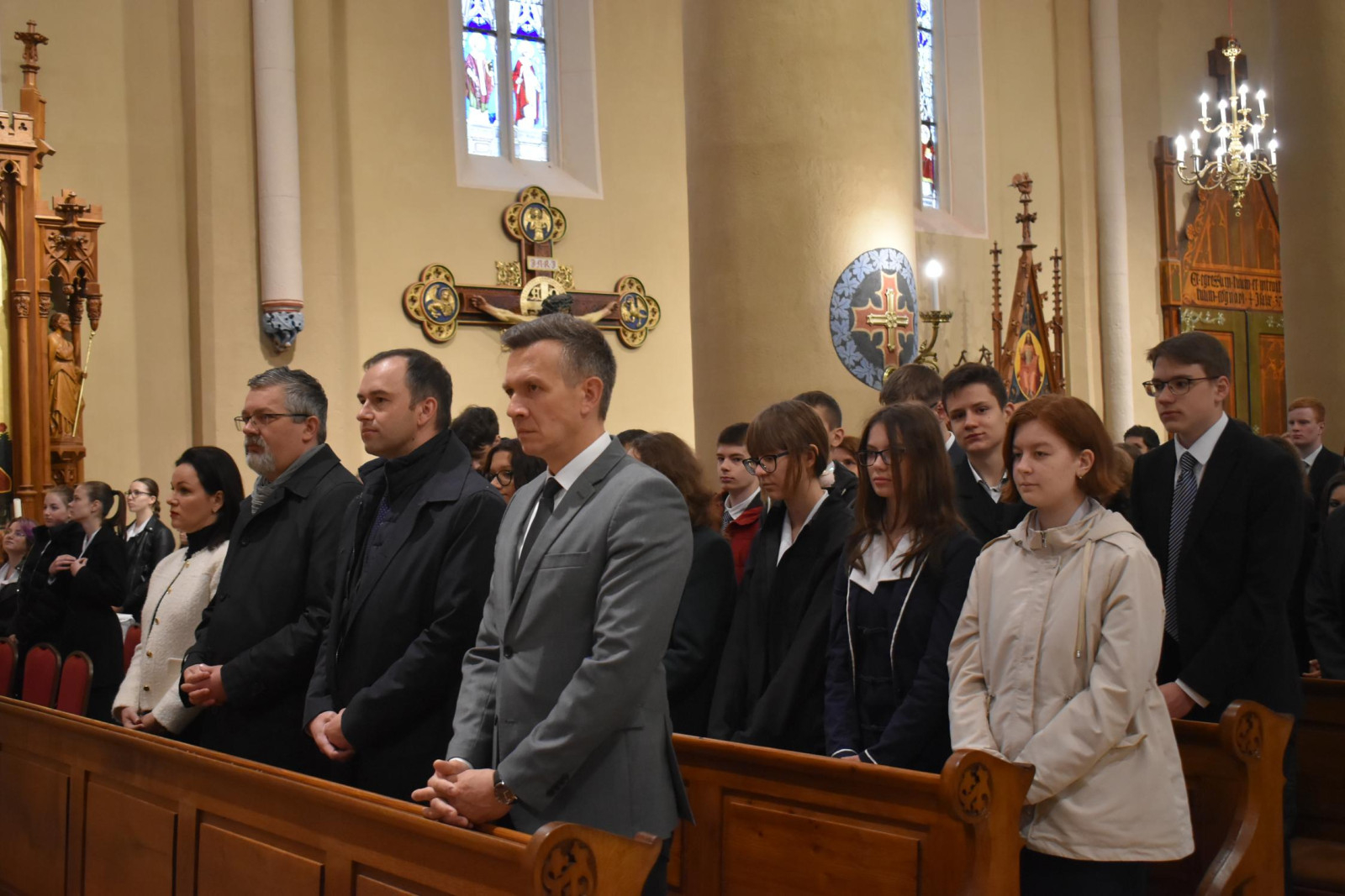 A Szent Mihály-templomban a 8–11. osztályosok, illetve az alsóbb évfolyamosok képviselői vettek részt a jubileumi év zárásaként püspöki szentmisén, amelyet Veres András megyéspüspök, az iskola fenntartója celebrált; koncelebrált Horváth Imre prépost, városplébános és Kovács Gergő Vilmos iskolalelkész. Az ünnepségen részt vett Farkas Ciprián polgármester, Barcza Attila Sopron és környéke országgyűlési képviselője és Orbán Adrienn, a szülői választmány elnöke is.