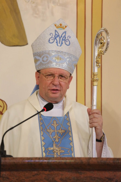 A világ jó, mert útjain az Isten járt – fogalmazott a püspök, majd hozzátette, az emberek jók, mivel közösséget vállalt velük az Isten. A Boldogasszony igazán boldog, mert Krisztus-hordozó lett. Minden ember, aki Krisztus-hordozó, boldog lesz. Azok, akik szinte mindennap önként szolgálják az embereket a Karitászban, Krisztust szolgálva, boldogok. Szent Pál tüzes lelkületre buzdítja a híveket (vö. Róm 12,11), hiszen akiben az isteni szeretet tüze ég, az képes arra, hogy odaforduljon másokhoz, és észrevegye embertársaiban az Istent, a szolgálat lehetőségét, mint ahogy Mária segített Erzsébetnek. A két kismama szívét a Szentlélek örömre gyújtotta a találkozásukkor. Amikor két ember a szeretetben találkozik, ott megjelenik az Isten, és a találkozás ünneppé válik. A karitászban végzett szolgálat is ilyen.