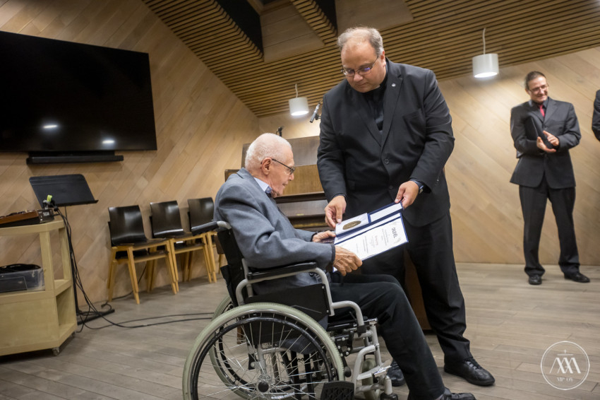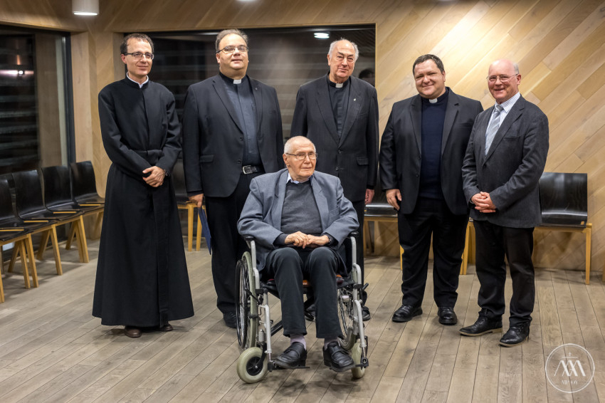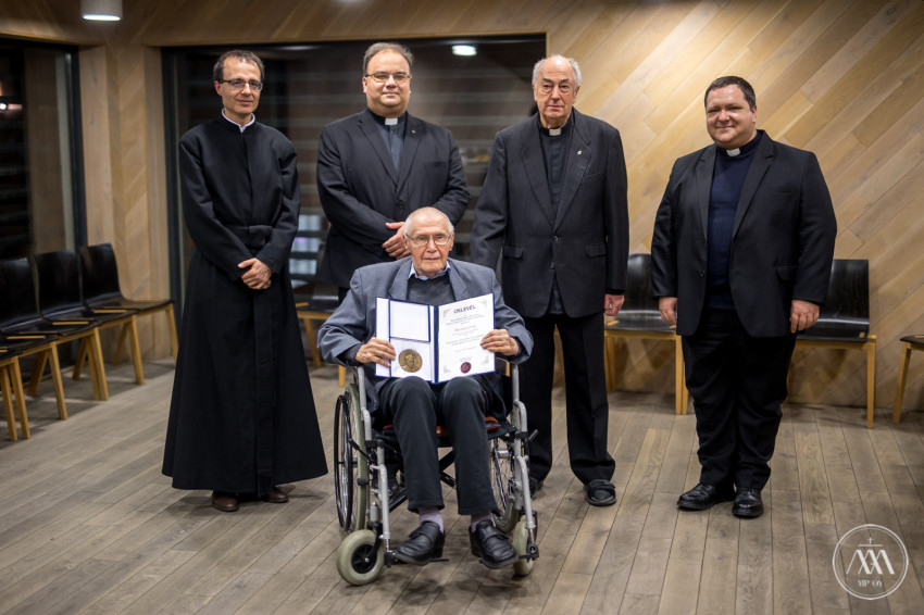 Kurtág György a temesvári piarista iskola öregdiákja és korunk legjelentősebb, világhírű zeneszerzőinek egyike – kezdte a kitüntetett méltatását Zsódi Viktor tartományfőnök. Ezt jelzi recepciója: az, hogy évtizedek óta világszerte játsszák alkotásait, jelzi a felsőfokon elismerő szakmai kritika, az interjúk, tanulmányok, könyvek sokasága, és azok a kitüntetések is, amelyekkel zeneszerzői életművét itthon és a világban megtisztelték, ahogyan a közelmúltban neki juttatott Wolf-díjjal történt. Szívből örülünk, hogy a világhírű művész életrajzában mindenütt ott van a Liszt Ferenc alapította Zeneakadémiát megelőző iskola, a hajdani Temesvári Piarista Gimnázium, ahol a bánáti Lugosról származó fiatalember középiskolai tanulmányait végezte.