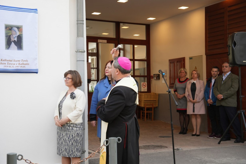 Felföldi László, az óvodát fenntartó Pécsi Egyházmegye püspöke beszédében kifejezte köszönetét és örömét, hogy az emléktábla a Kalkuttai Szent Teréz Óvodát gazdagíthatja.