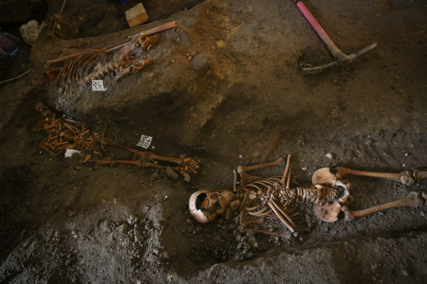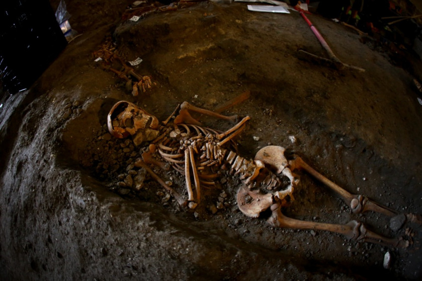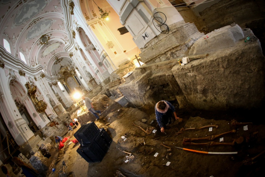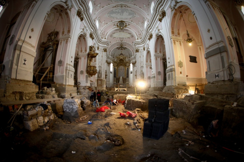 A padlózat alatt talált csontmaradványok feltehetően civilek, részben gyermekek csontjai. A második székesegyházban, az oldalhajóban található oltároknál adományok fejében egy-egy családi sírhely lehetett. Ennek egy érdekes példájára bukkantak, mondta el a főépítész: ez ugyan szedett-vedettnek tűnik feltárt állapotában, de belülről kivakolt volt, s boltozati töredékeket is befalaztak ebbe a kriptába. Ezt később osszáriumnak használták. Eddig csaknem kétszázötven csontlelet került elő innen, sok a töredék az egymásra temetkezés miatt.