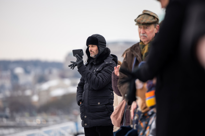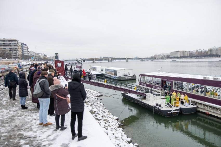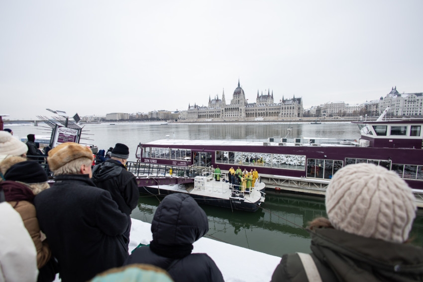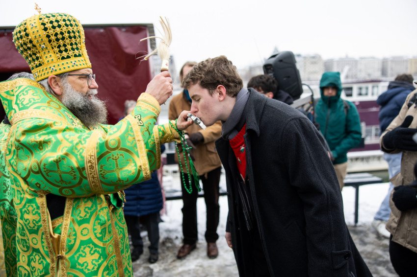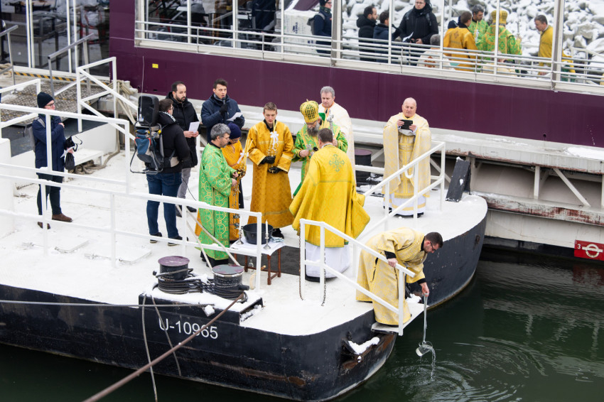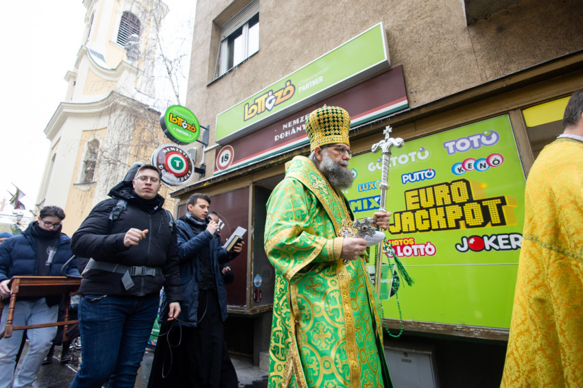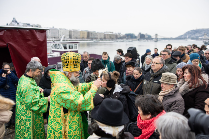 A Szent Liturgia után indult a menet énekkel vonulva a Dunához. Makláry Ákos, a Budai Görögkatolikus Egyházközség parókusa arra buzdított, tegyünk tanúságot arról, hogy velünk van Isten. A templom papsága és a hívek imádkozva haladtak végig a rakparton. „Szentelj meg engem és a vizeket, Üdvözítő” – hangzott fel újra és újra az emberek ajkán.