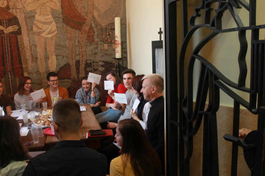 A résztvevők ezt követően tizenkét csoportba osztva, csoportvezetők irányításával beszélgettek. A bemutatkozó játék után megosztották egymással, hogy mi volt az a gondolat, amely megragadta őket a tanításból.