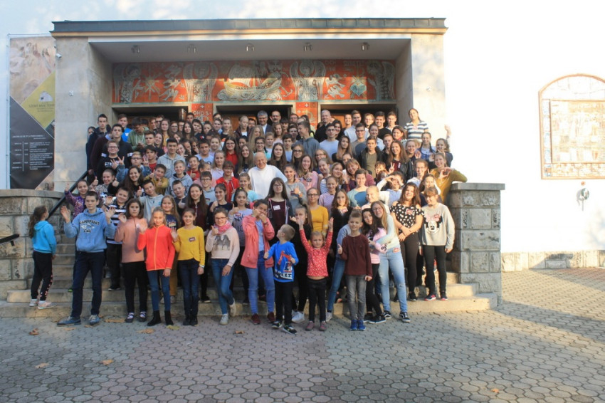 Előadása után közös fényképezkedésre hívták Lajos atyát, aki örömmel vállalkozott rá.