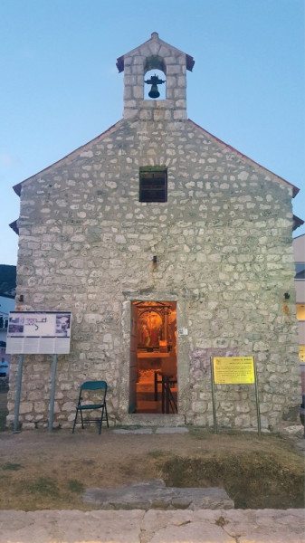 A kis templomot nappali és esti fényben is általában a bejárat felől fényképezik, de én most szeretném megmutatni a kicsiny, szürke terméskövekből rakott épület másik, ugyancsak nagyon szép, rendkívül harmonikus arcát is. A kápolnácska hátsó frontját, amely egy méhkas mindig megnyugtató, mert a méz gyógyító erejére, őszinte édességére emlékeztető formáját mutatja.