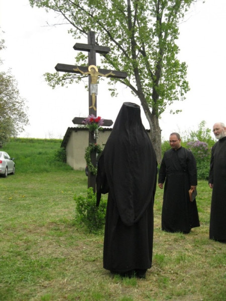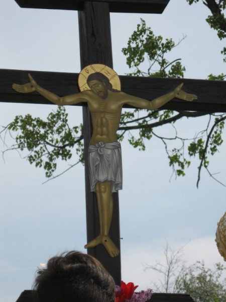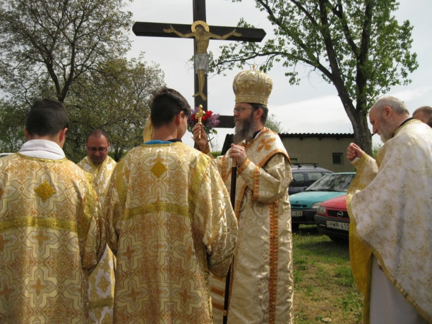 Orosz Atanáz a kápolnabúcsú keretében megáldotta az udvaron álló megújult keresztet is.