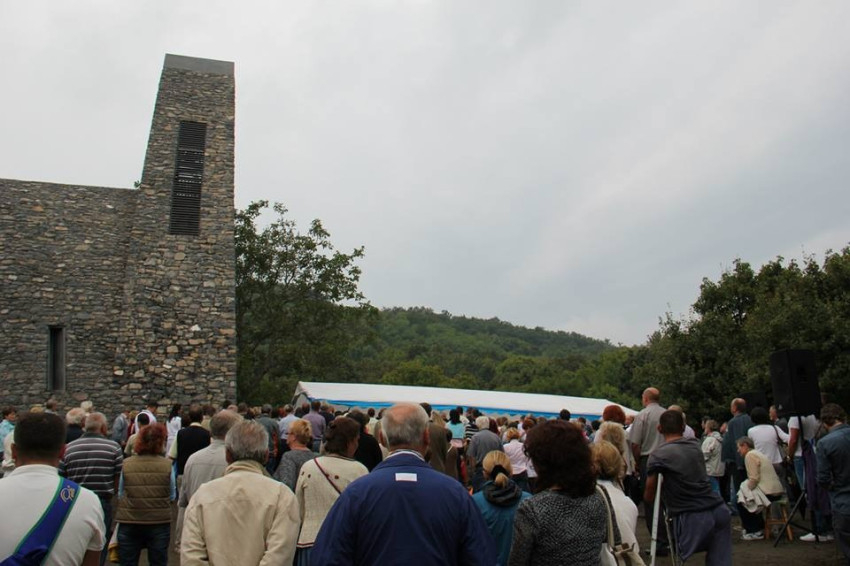 A 6×12 méteres kis kápolna előtti területen nagyon sokan gyűltek össze az ünnepre a borongós időjárás ellenére, és csodálatos módon az eső is elállt a szentmise idejére.