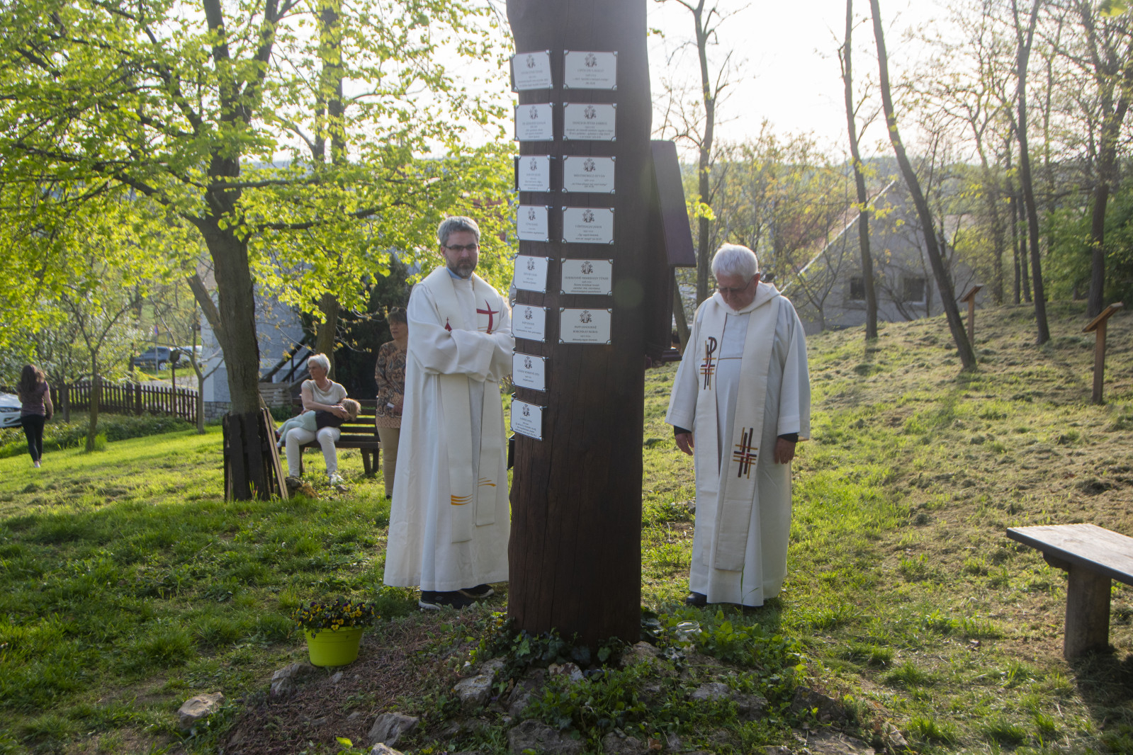 Richárd atya beszélt arról, hogy csodaként éli meg azt az évről évre növekvő életet, amelyet Óbudaváron megtapasztal. A szentmise után megáldotta a felújított emlékoszlopot, amelyen a közösség elhunyt tagjainak neve és egy-egy rájuk jellemző mondat szerepel.
