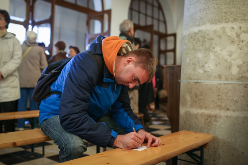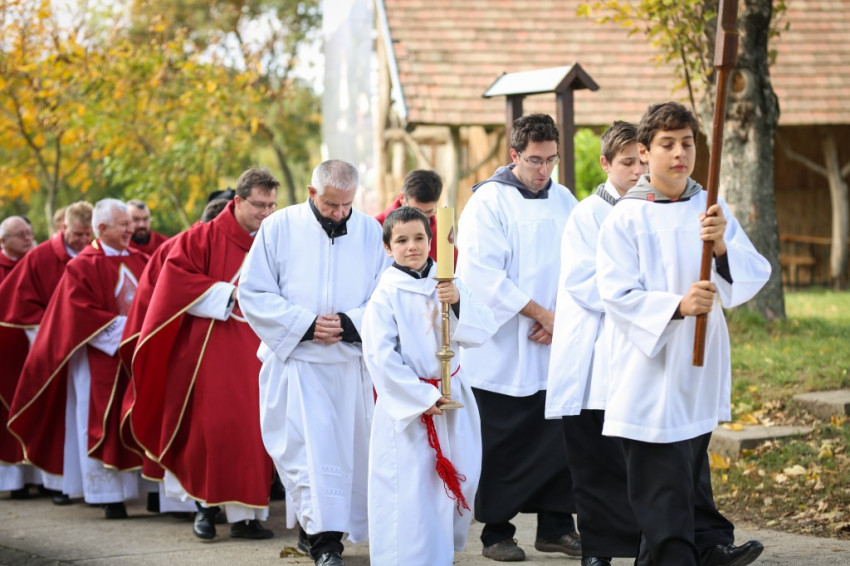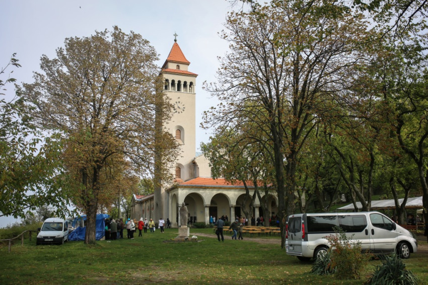 A Klastrom-dombon, a bátai templom előtti téren már álltak a sátrak, az ostorfák és gesztenyefák alatt pedig padok, asztalok sorakoztak. A Kaposvári Egyházmegye zarándokközösségeit várták ide ezen a késő őszi napon, akik napsütésben, de már hideg, viharos szélben gyülekeztek a szentmisére. Eközben sokan szentgyónásra vártak, mások Sümegi József kegyhelyismertető vetített képes előadását hallgatták.