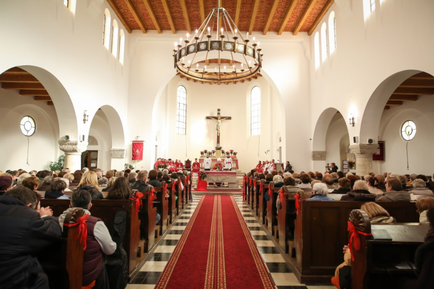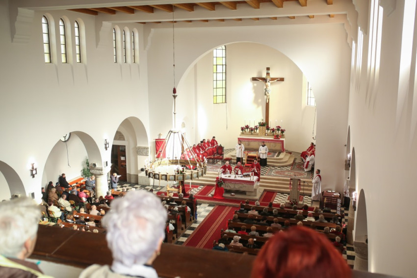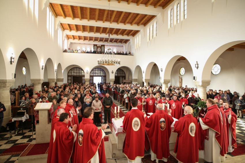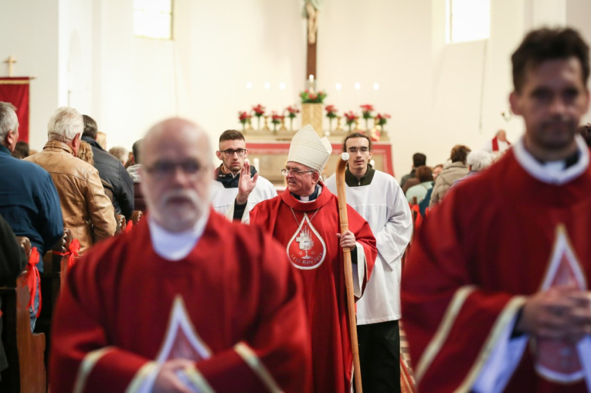 A szentmise kezdetén a Bátaszéken és Bátán szolgáló diakónus, Sümegi József köszöntötte a Kaposvári Egyházmegye közösségét. A köszöntő szavakra válaszként Varga László megyéspüspök örömének adott hangot, hogy egyházmegyéjében ilyen sokan elfogadták a hívást, és együtt ünnepelhetnek. „Azért ajánlom fel a szentmisét, hogy mindenki növekedjék a szeretetben” – mondta el a főpásztor. Hozzátette, 2020-ig minden évben szerveznek majd az egyházmegye közösségeit hívó zarándoklatot, és felkeresnek egy-egy eucharisztikus kegyhelyet.