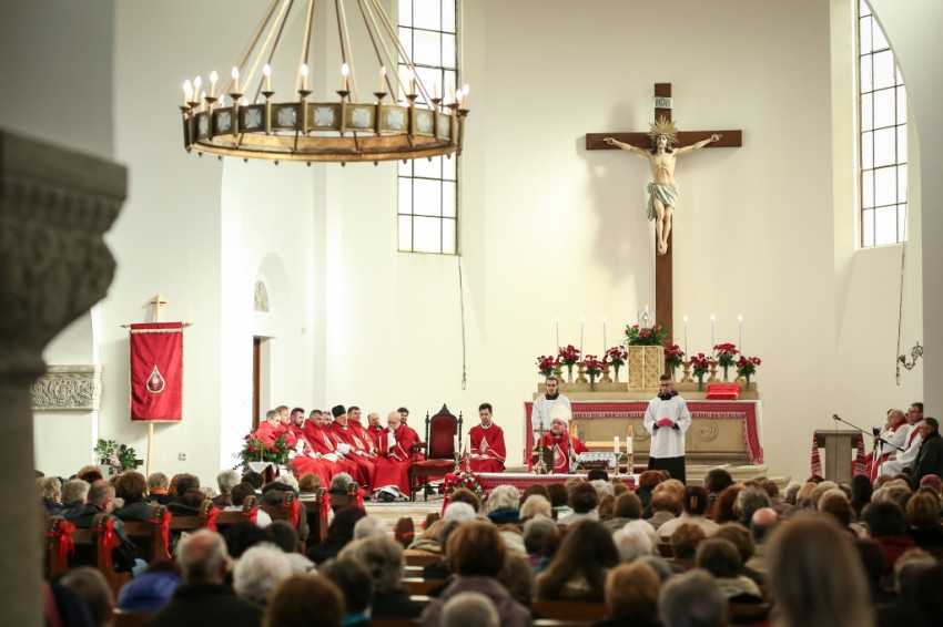 Első ízben keltek útra az egyházmegye egész területéről a plébániák közösségei, akik a Nemzetközi Eucharisztikus Kongresszusra készülnek azt a kegyhelyet felkeresve, ahol az 1938-as kongresszus után építettek újra templomot a török hódítást követő teljes pusztítás után. Ma Báta az egyetlen, ámde évszázados múltra visszatekintő eucharisztikus kegyhelyünk. Egykor a királyok tették naggyá, és hívek sokasága imádkozott itt Jézus Szent Vérének tiszteletét éltetve. Ma, a kegyhelygazda Pécsi Egyházmegye fáradozik a megújításán, hogy újra erőforrás lehessen a magyar egyház számára. A templom fehérre festett falainak díszítésében meg-megjelenő piros szín a lényegre irányítja a figyelmet: az Eucharisztiában jelen lévő Krisztusra.