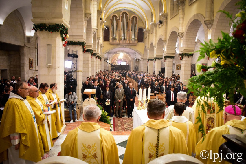 Az éjféli szentmisét a jeruzsálemi latin patriarkátust vezető érsek, Pierbattista Pizzaballa tartotta, akit a palesztin keresztény előkelőségek fogadtak a város főterén, a Születés Temploma mellett.