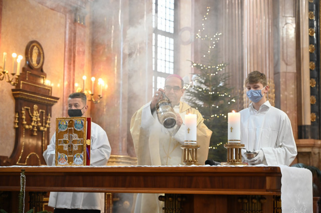 A főpásztor szentbeszédében arra hívta fel a figyelmet, hogy ez az ünnep a szeretetre tanít: Isten öröktől fogva a javát akarja az embernek, az ő szeretett teremtményének. Jézus Krisztus születésében, az Istengyermek születésében az örök isteni terv, akarat valósul meg, s a gyermek születésében, a gyermekre való rácsodálkozásban pedig tanít bennünket isteni módon szeretni.