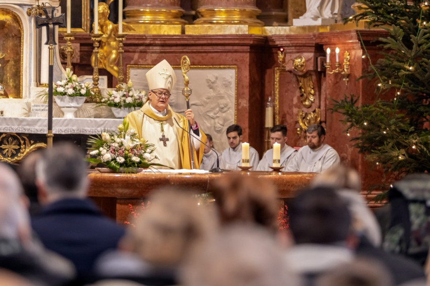 A főpásztor arról is beszélt, Isten arra hív bennünket, hogy igaz gyermekei legyünk, hogy a vele való találkozás ne csak egy karácsonyi hangulat legyen, hanem életet formáló erő. A gyermek Jézus meghív bennünket az Isten országába. Nemcsak eljött, hogy meglátogasson bennünket, hanem elment, hogy helyet készítsen számunkra az Atyai Ház örömébe.