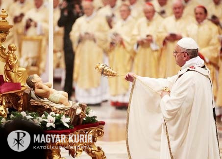 A misére a bazilika megtelik olasz és külföldi hívőkkel, zarándokokkal. A Vatikán honlapja szerint a szertartás olasz, angol és latin nyelven zajlik, de arabul imádkoznak majd az evangélium terjesztéséért és kínaiul a szenvedőkért. A mise során a pápa a bazilika betlehemében a gyermek Jézus szobrát a jászolba helyezi, ahova a világ öt kontinenséről érkezett gyerekek virágokat visznek. Ferenc pápa tavalyi első karácsonyán rövid, nem előre megírt homíliát mondott.