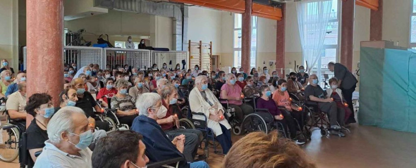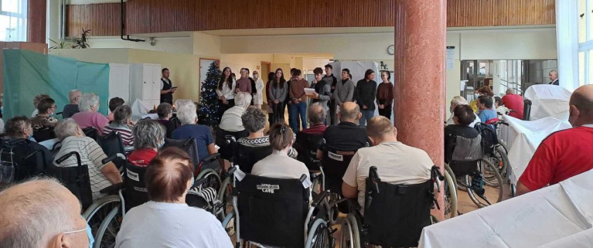 A csomagokat a Svetits Katolikus Gimnázium 11. A osztályos diákjainak műsora keretében, Szurmai Tamás osztályfőnök vezetésével adták át a betegeknek.