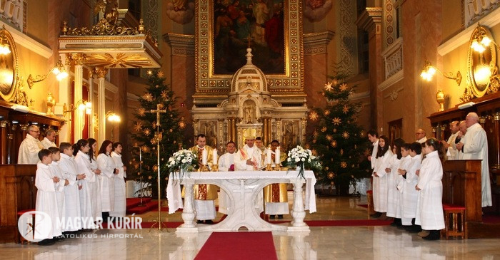 Böcskei László megyéspüspök a szentmise elején hangsúlyozta: karácsony titkát a hozzánk érkező gyermek állítja elénk, hogy feloldja félelmeinket, szorongásainkat, és a homályt beragyogó fénnyel megmutassa az Atya felé vezető utat. Ugyanis már a betlehemi jászolban azt üzente számunkra az Úrjézus: én vagyok az út, az igazság és az élet.