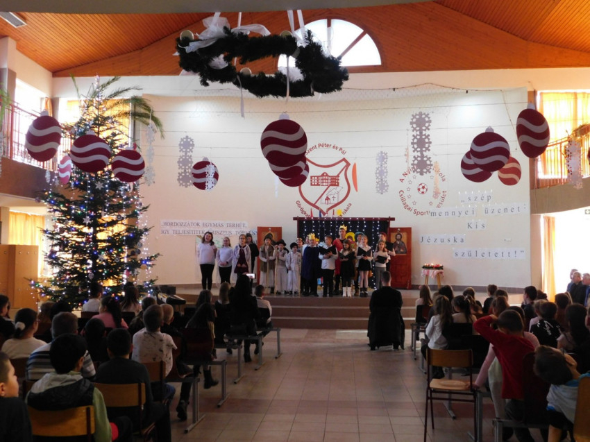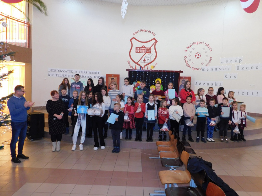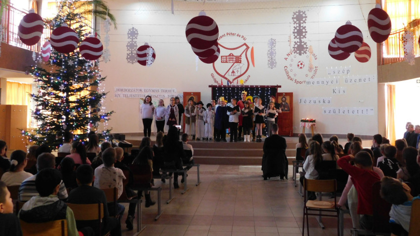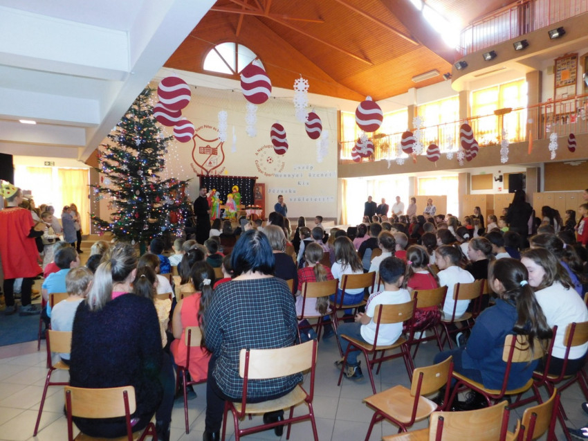 Iskolánk tanulói és meghívott vendégeink előtt idén a karácsonyi előadást, amit a görögkatolikus hittanos gyerekek adtak elő, Rádi Dávid atya tanította be a gyerekeknek, akik pásztorjátékkal kedveskedtek nekünk.