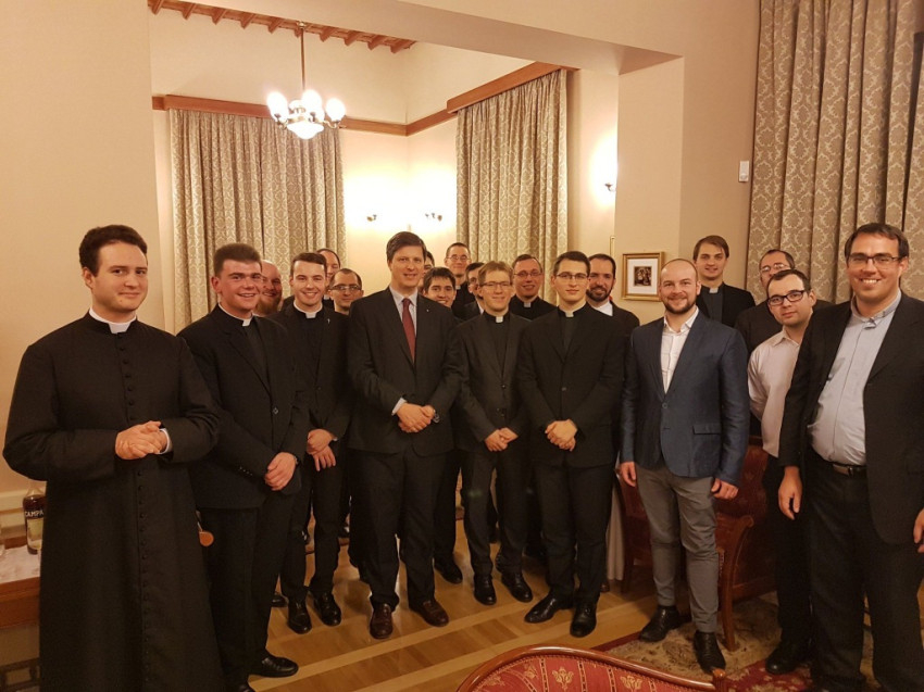 Magyarország Szentszékhez rendelt nagykövete, Habsburg-Lotharingiai Eduard december 13-án látta vendégül a Rómában tanuló magyar lelkipásztorokat és papnövendékeket. A nagykövet bemutatta nekik a követség munkáját és családját. Elmondta, hogy missziójának egyik legfontosabb feladata, hogy Magyarországról beszéljen és a magyarok értékeit megismertesse mindenkivel. A karácsonyvárás jegyében karácsonyi és adventi énekeket énekeltek a vendégek.