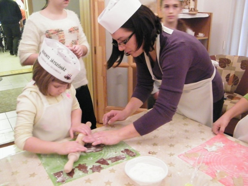 A játszóházat megelőzően a részt vevő asszonyok próbasütést végeztek. A sikert jelezte, hogy a „rorátés” ministránsok hamar elkapkodták a finomságot.