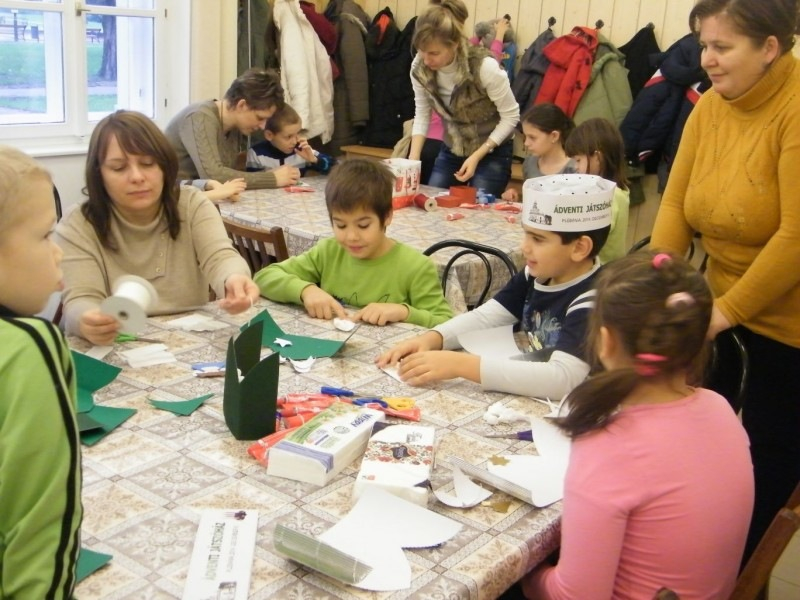 A játszóházban a mézeskalács-készítés mellett színezős és ajándékkészítő programok várták a gyerekeket, akik szüleikkel, nagyszüleikkel érkeztek. Egész délelőtt lázas munka folyt a plébánia közösségi helyiségeiben. A foglalkozásokat a Páli Szent Vince Katolikus Általános Iskola és Óvoda pedagógusai vezették.