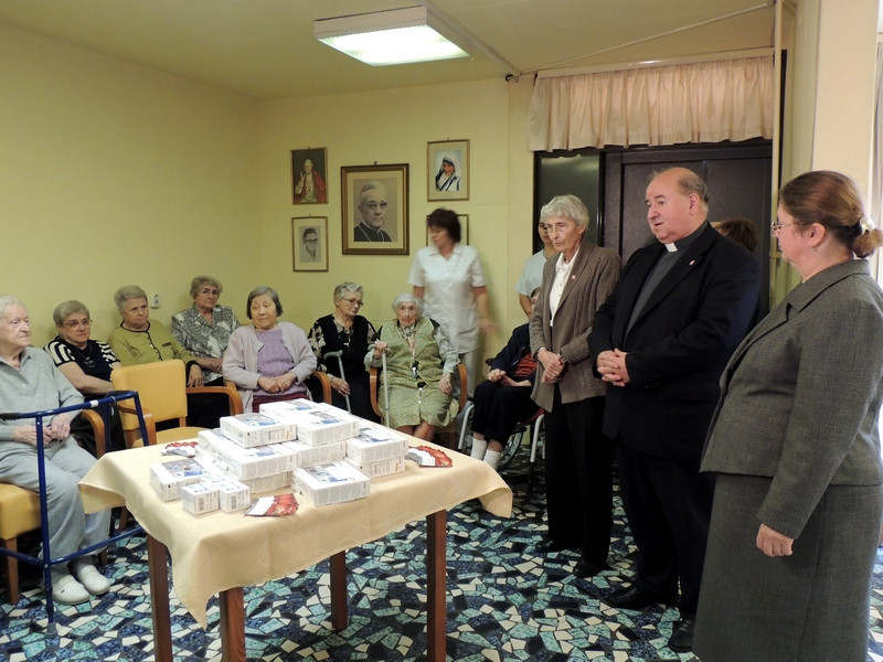Az átadón Écsy Gábor elmondta: a Karitász tavaly indította el az élet védelmét szolgáló akciósorozatát, amelynek keretében az előző évben tizenöt inkubátort adományozott országszerte kórházaknak, valamint idén két defibrillátort, és most több mint kétszáz vércukorszintmérő készüléket adott át. „Szolgálják ezek az eszközök is az élet védelmét, hogy minél tovább élvezhessék a szeretetotthon gondoskodását!” – kívánta az intézmény lakóinak a Karitász igazgatója.