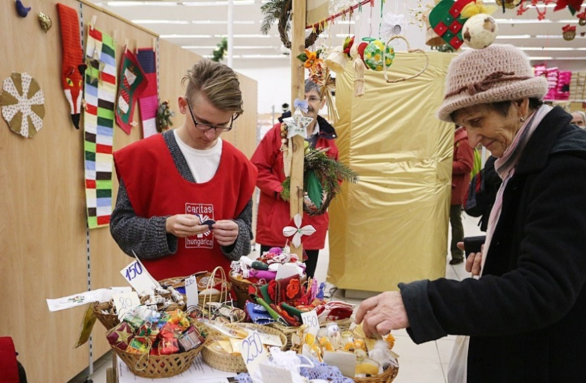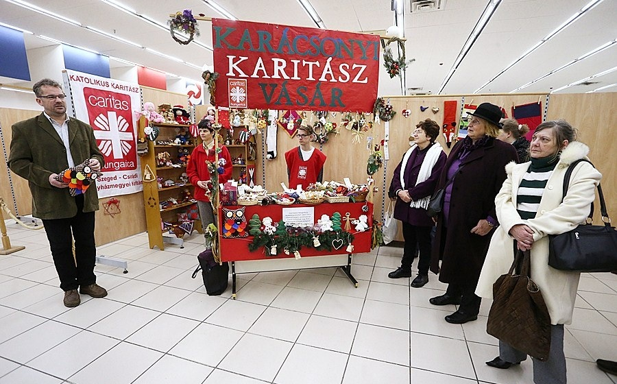 „Ezek a tárgyak teli vannak szeretettel, a kéz, a figyelem, a tenni akarás és a segítőkészség közvetlenségével” – fogalmazott Marton Árpád író, a karácsonyi karitász-vásár ötletgazdája. Elmondta, az elmúlt húsz év alatt rengeteg embernek lehetnek hálásak, akik a kezdeményezés mellé álltak, és akár már két évtizede próbálnak segíteni másoknak. Visszaemlékezett arra is, hogy a kezdetekkor a nagyáruházban dolgozók mindennap megkérdezték, mennyire volt sikeres a vásár, vajon hányan jöttek, hogy nehéz sorsú embertársaikon segítsenek.