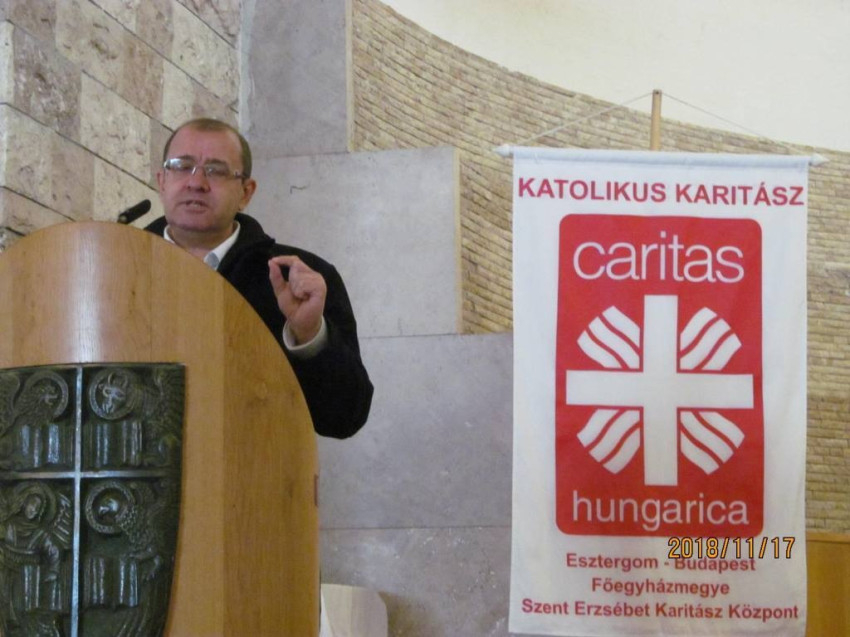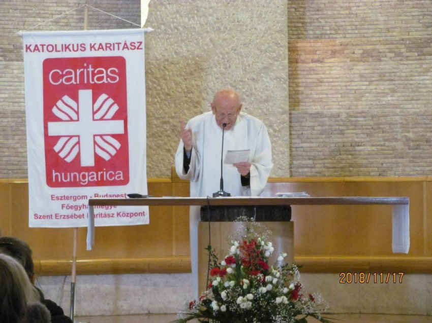 Délelőtt a 92. életévében járó Kerényi Lajos piarista szerzetes tartott előadást, amelyben kiemelte, a szeretet természetes tulajdonsága, hogy kiárad, oda akarja adni önmagát mindenkinek, tehát ez a karitász lényege is: szeretetet adni, kiáradni a világba.