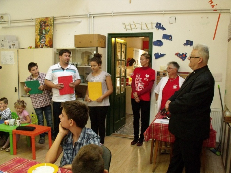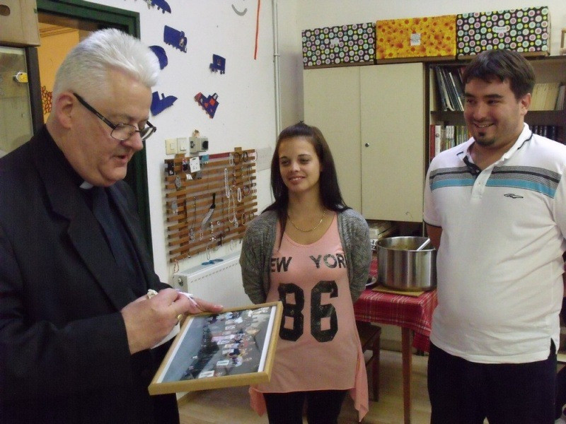 Németh Ádám, a Szent Imre Iskolaház vezetője a gyermekek nevében megköszönte a segítséget és bemutatta az intézmény mindennapjait a főpásztornak: a diákok délután három óra körül érkeznek meg hozzájuk, ekkor szabadprogram várja őket. Aztán jön a tanulás, amelyben önkéntesek segítik a gyermekeket. Ezt követően mindenki vacsorázik, segít a rendrakásban, majd körülbelül este fél nyolckor indulnak haza a gyermekek. A legfiatalabb három éves, a legidősebbek pedig tizenöt évesek. A hátrányos helyzetű fiatalok délutáni ellátásába számos fejlesztő program is belefér, amelyet adományokból valósítanak meg. Már elkezdték egy saját veteményeskert kialakítását is.