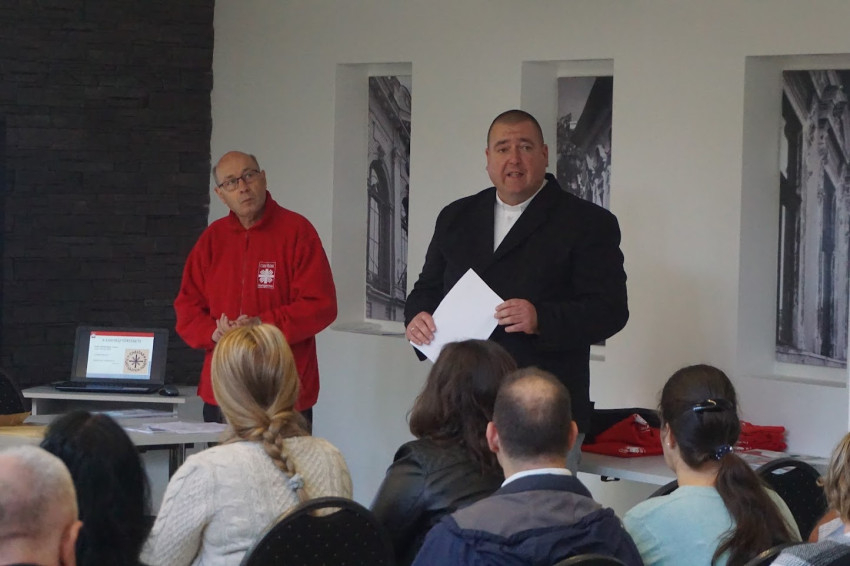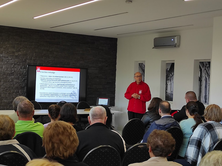 A tréning első részében inkább az elmélet kapott hangsúlyt, többek között a Karitász története, szervezeti felépítése, tevékenységi területei. Lőrincz Pál említést tett olyan szentekről is, akik példájából meríthetnek az önkéntesek, különösen ha munkájuk végzése kapcsán nehézségekbe, netán bírálatba ütköznének. A görögkatolikus egyházban tisztelt szentek közül többek között Nagy Szent Bazil vagy Alamizsnás Szent János állhat ilyen példaként előttünk.